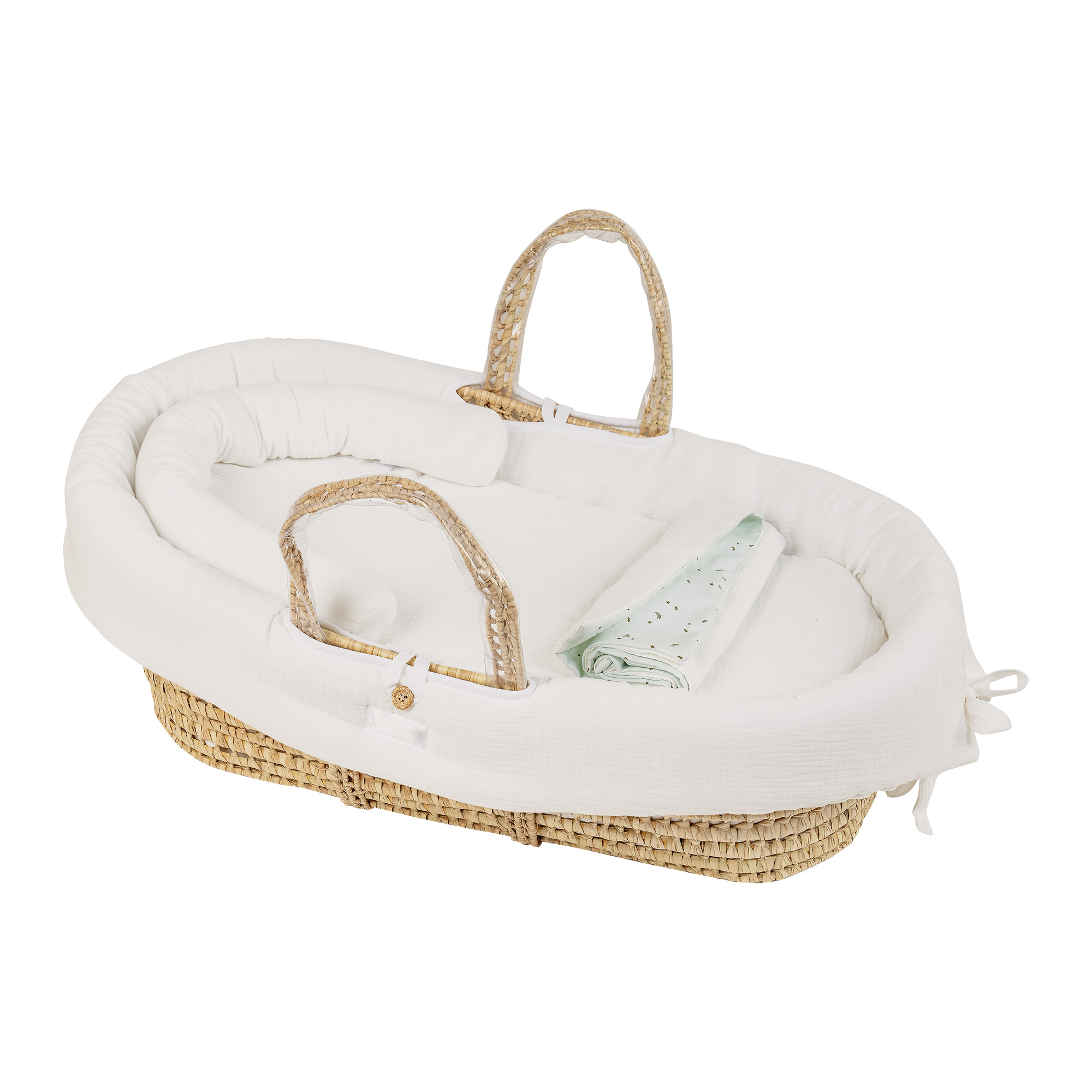 MISS è la culla composta da struttura in legno bianco laccato ed è dotata di ruotine piroettanti per agevolare gli spostamenti in casa. Il rivestimento tessile è realizzato in cotone. Completa di velo con asta, materasso e riduttore. Utilizzabile dalla nascita fino ai 6 mesi.
