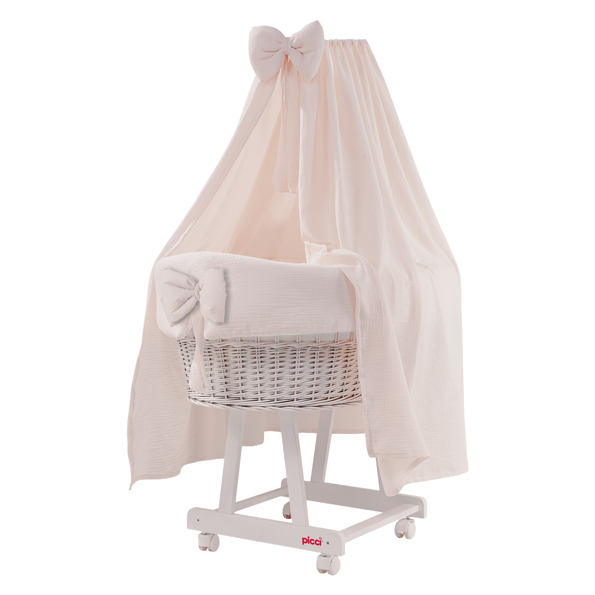 Culla Miss completa con fiocco tessile, velo, riduttore e materassino – Rosa talco