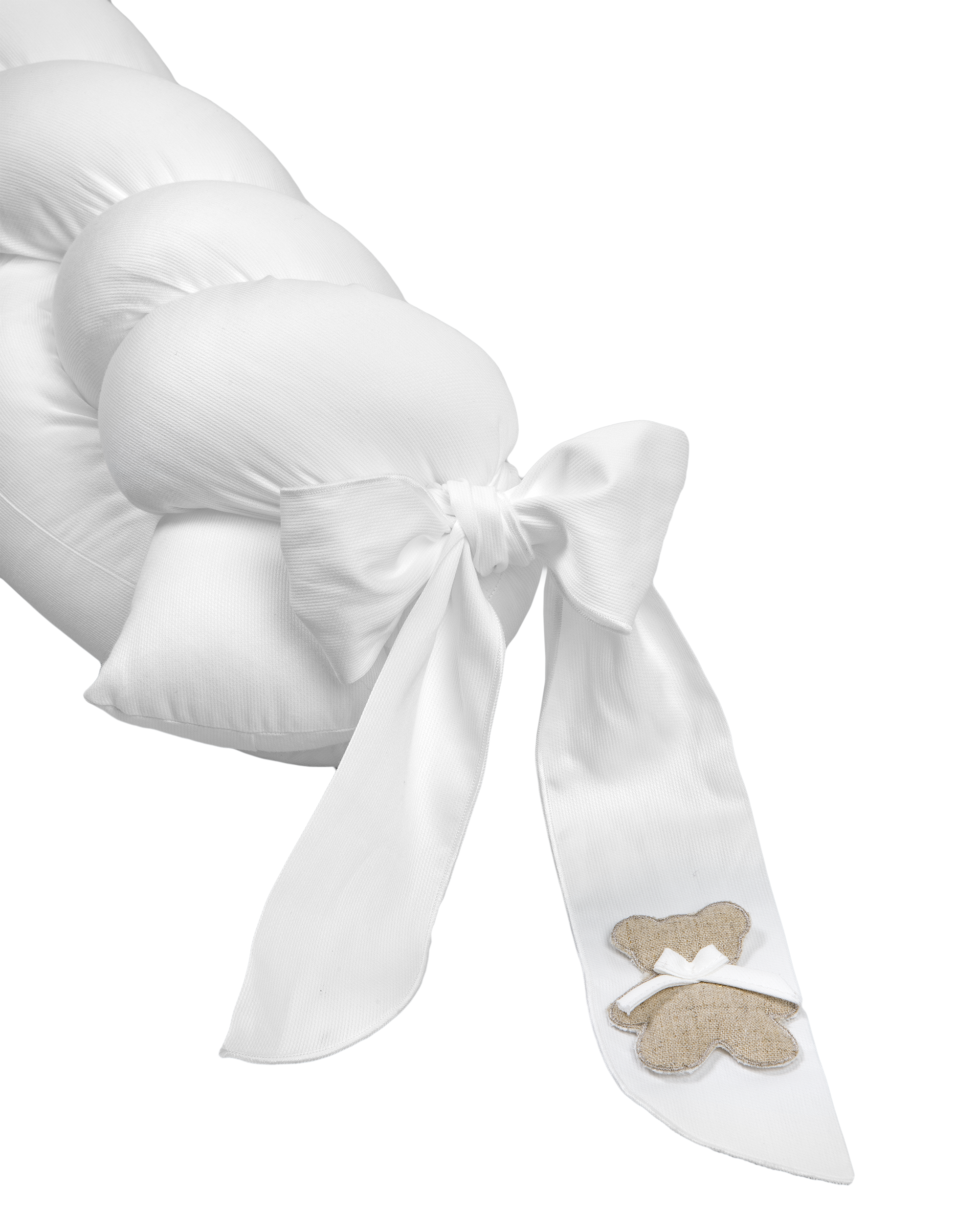 Treccia 3 intrecci Teddy bianca con decoro dell’orsetto color tortora, pratica ed elegante grazie alla sua forma morbida e armoniosa, ideale per aggiungere un tocco di dolcezza alla cameretta.